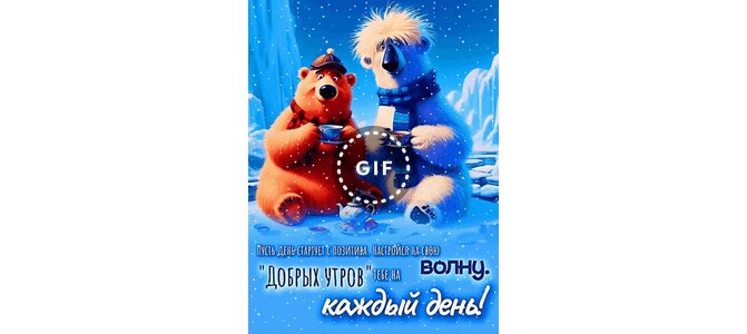 Анимированная открытка "Пусть день стартует с позитива. Настройся на свою волну. Добрых утров тебе на каждый день!"