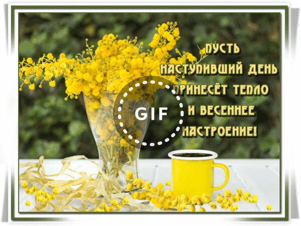 Анимированная открытка "Пусть наступивший день принесёт тепло и весеннее настроение!"