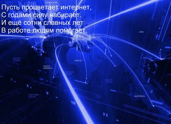 Открытка "Пусть процветает интернет, с годами силу набирает. И ещё сотни славных лет в работе людям помогает."