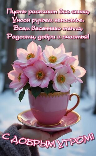 Открытка "Пусть растают все снега, Унося ручьем ненастье. Всем весеннего тепла, Радости, добра и счастья!"
