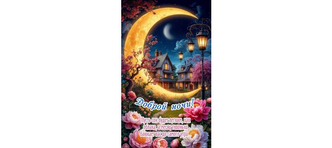 Доброй ночи! Пусть сон будет легким, как облака, а месяц тихонько баюкает вас до самого утра...