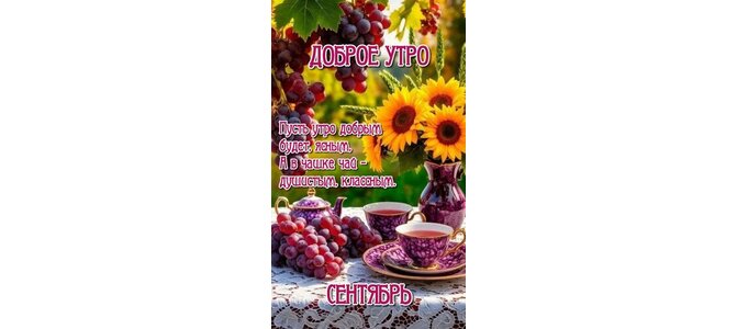 Доброе утро. Пусть утро добрым будет, ясным, а в чашке чай - душистым, классным. Сентябрь.