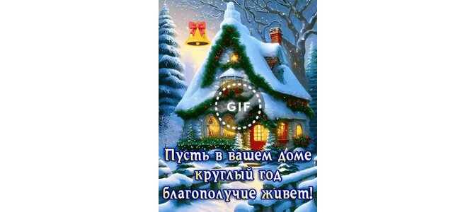 Анимированная открытка "Пусть в вашем доме круглый год благополучие живёт!"