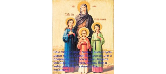 Открытка "Пусть Вера, Надежда, Любовь вам счастье дают вновь и вновь! Пусть дарит святая София вам долгие дни..."