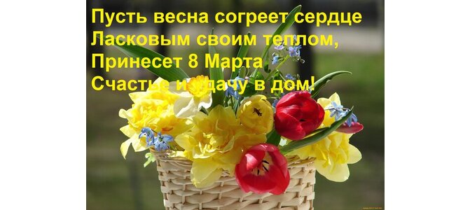 Теги:пусть весна согреет сердце ласковым своим теплом, принесет 8 марта счастье и удачу в дом