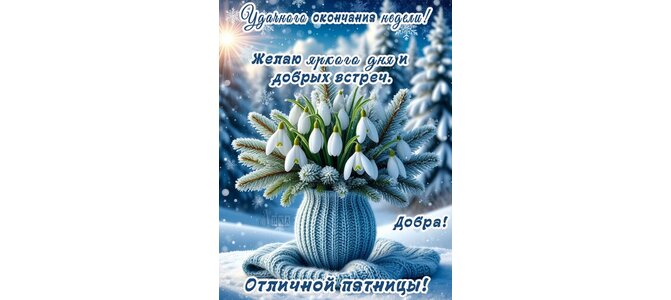 Теги:пятница, дни недели, цветы, лес, снег, добрый день, красивая картинка, добра, удачи, легкого окончания недели, добрых встреч