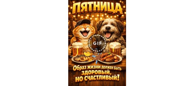 Анимированная открытка "Пятница. Образ жизни должен быть здоровый, но счастливый!"