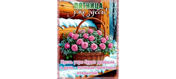 Открытка "Пятница уже здесь. Пусть утро будет добрым, а день - полным приятных открытий."
