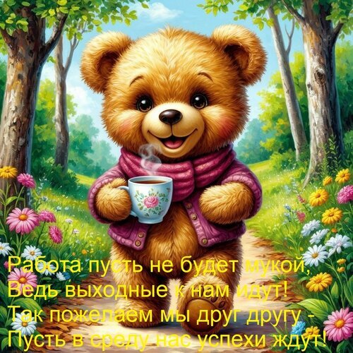 Теги:работа пусть не будет мукой, ведь выходные к нам идут так пожелаем мы друг другу - пусть в среду нас успехи ждут