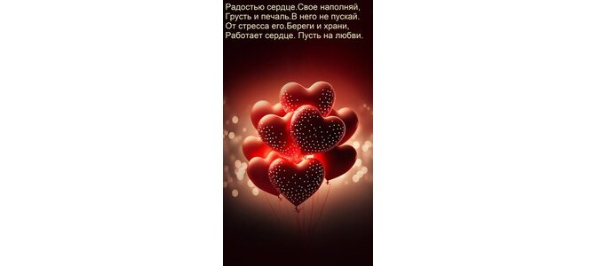 Теги:радостью сердце свое наполняй, грусть, печаль, него, пускай, стресса, его, береги, храни, работает сердце пусть на любви