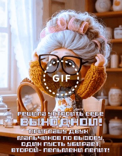 Анимированная открытка "Решила устроить себе выходной! Приглашу двух мальчиков по вызову, один пусть убирает, второй - пельм"