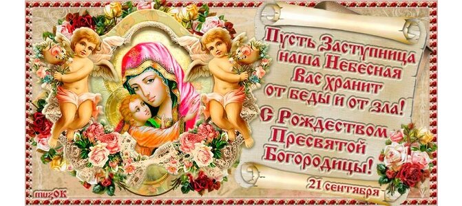 Пусть Заступница наша Небесная Вас хранит от беды и от зла! С Рождеством Пресвятой Богородицы! 21 сентября