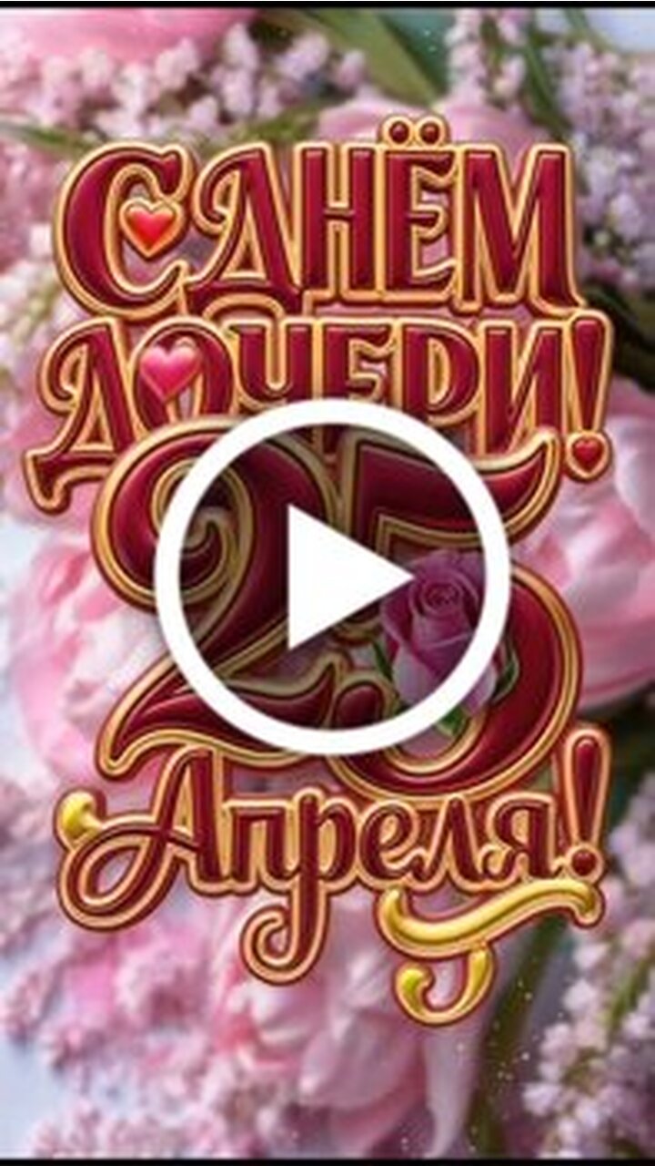 Красивое поздравительное видео с нежными розовыми цветами и эстетичным оформлением. Сюжет представляет собой плавную смену праздничных надписей на фоне пышных пионов и роз. Видео начинается с поздравления с днем рождения дочери, приуроченного к 25 апреля. Вторая часть видео наполнена романтикой и нежностью, где золотые и фиолетовые надписи на фоне розовых роз призывают любить и желают быть любимой. Видео идеально подходит для отправки близким в качестве теплого и эмоционального поздравления.