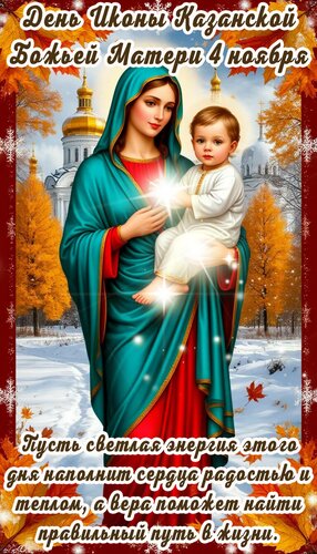 День иконы Казанской Божьей матери. 4 ноября. Пусть светлая энергия этого дня наполнит сердца радостью и теплом, а вера поможет найти правильный путь в жизни.