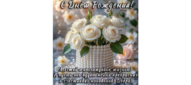 С днём рождения! Мечтай и наслаждайся жизнью! И пусть она будет полна прекрасных и счастливых мгновений! Добра!