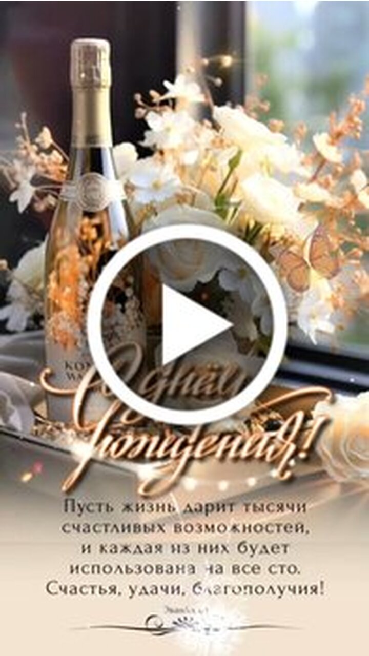 Красивое эстетичное видео с теплыми пожеланиями. В кадре представлена изысканная композиция из белых роз, нежных цветов и бутылки игристого напитка в мягком солнечном свете. Кадры дополнены летящими бабочками, создающими атмосферу праздника и гармонии. Текст видео несет в себе глубокий позитивный смысл: пожелания счастья, удачи, благополучия и реализации тысячи возможностей, которые дарит жизнь. Это идеальное видео для того, чтобы поделиться вдохновением, поздравить близких или просто создать прекрасное настроение.
