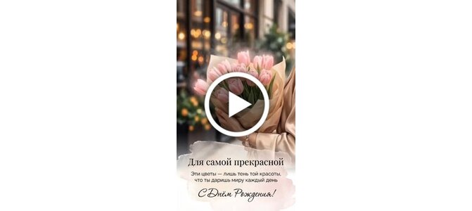 Видеооткрытка "С днём рождения! Эти цветы - лишь тень той красоты, что ты даришь миру каждый день. Для самой прекрасной"