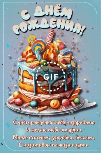 Анимированная открытка "С Днём Рождения! С днём рожденья тебя поздравляю и желаю тебе от души много счастья, здоровья,"