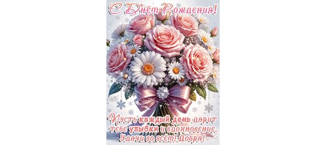 Теги:с днём рождения женщине, с днём рождения, женщине, цветы, розы, ромашки, красивая картинка, позитив, улыбок, вдохновения, удачи, добра, букет цветов