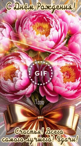 Теги:с днём рождения женщине, женщине, с днем рождения, днюха, счастья, удачи, всего с амого доброго, пионы, цветы, анимация, гифка, красивая анимация, девушке