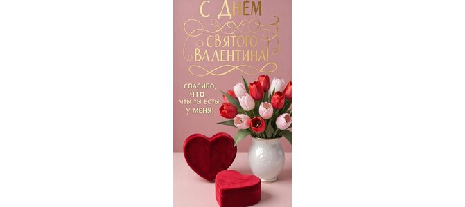 Открытка "С днём святого Валентина. Спасибо, что ты есть у меня."