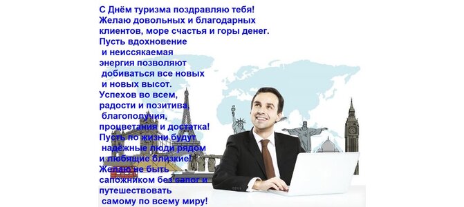 Открытка "С Днём туризма поздравляю тебя! Желаю довольных и благодарных клиентов, море счастья и горы денег. П"