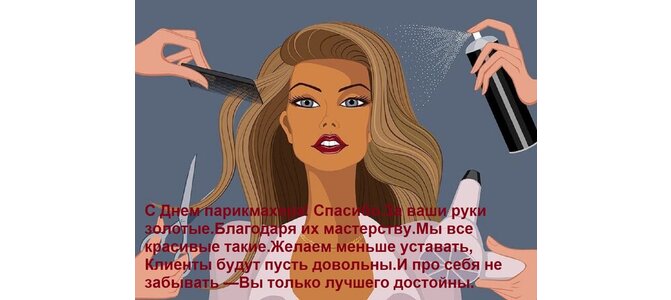 Открытка "С Днем парикмахера! Спасибо За ваши руки золотые. Благодаря их мастерству Мы все красивые такие. Жел"