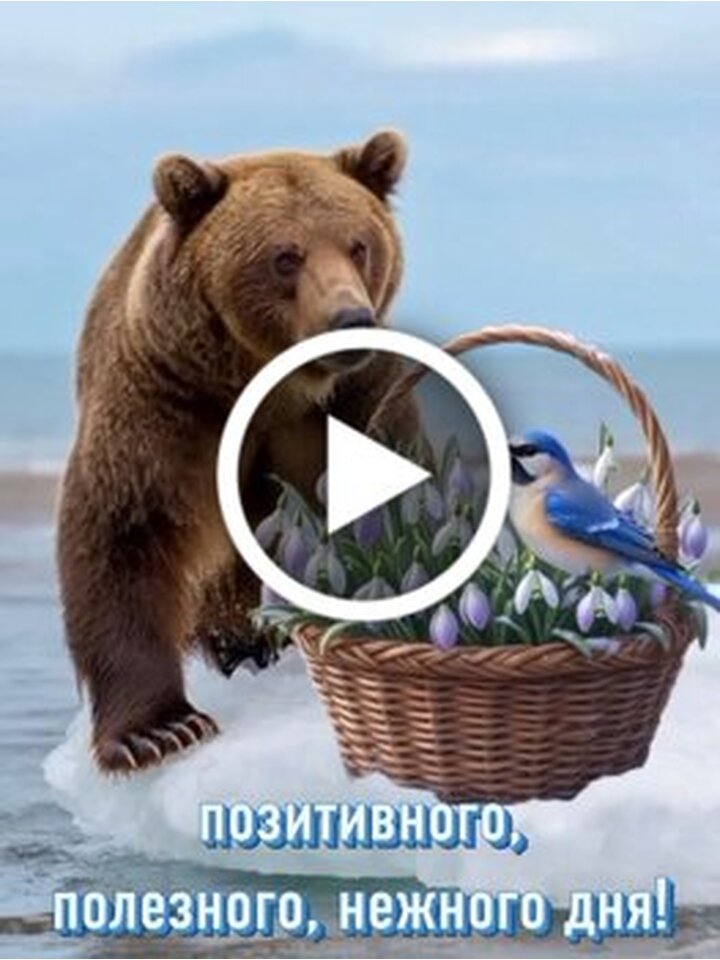 Красивое и доброе поздравительное видео к Дню подснежника. На видео представлен сюрреалистичный и милый сюжет, где большой бурый медведь стоит на льду рядом с корзиной нежных белых подснежников. В корзине среди цветов сидит маленькая синяя птица, которая с интересом изучает растения. Видео наполнено весенним настроением и несет пожелания позитивного, полезного и нежного дня. Идеально подходит для отправки близким в качестве теплого весеннего приветствия.