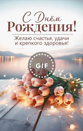 Анимированная открытка "С Днем Рождения! Желаю счастья, удачи и крепкого здоровья!"