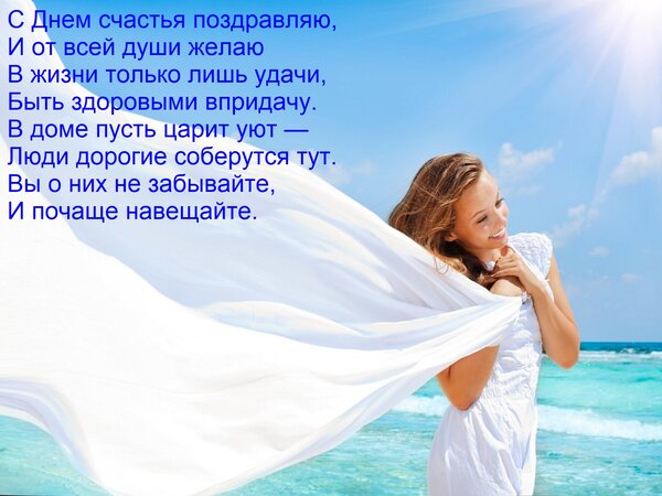 Открытка "С Днем счастья поздравляю, И от всей души желаю В жизни только лишь удачи, Быть здоровыми впридачу."
