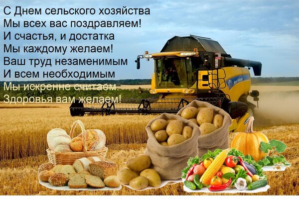 Открытка "С днем сельского хозяйства мы всех вас поздравляем! И счастья, и достатка мы каждому желаем! "
