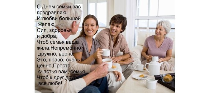Теги:с днем семьи вас поздравляю, и любви большой желаю, сил, здоровья и добра, чтоб семья ваша жила непременно дружно, верно, это, право, очень ценно, просто счастья вам, семья, чтоб к друг другу все любя