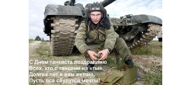 С днем танкиста поздравляю всех, кто с танками на «ты». Долгих лет я вам желаю, пусть все сбудутся мечты!