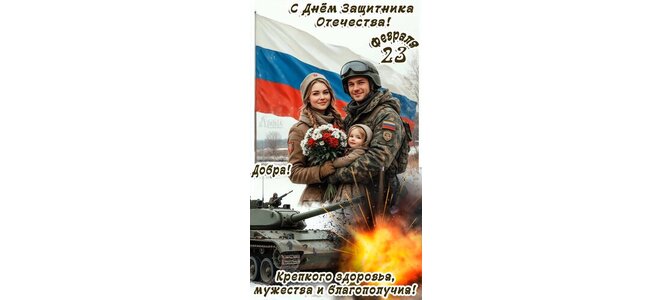 Теги:с днем защитника отечества, 23 февраля, добра, наш флаг, наш триколор, танк, оружие, военный, девушка, ребенок, здоровья, мужества, благополучия