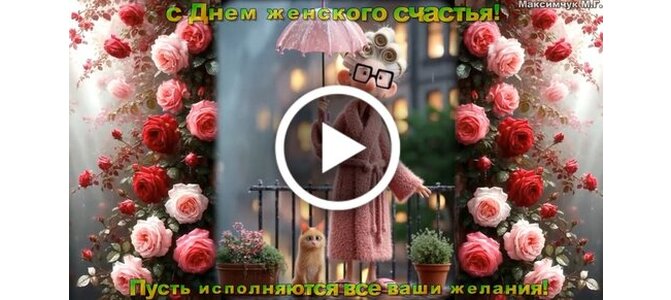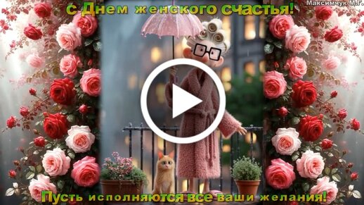 Видеооткрытка "С днем женского счастья! пусть исполняются все ваши желания"