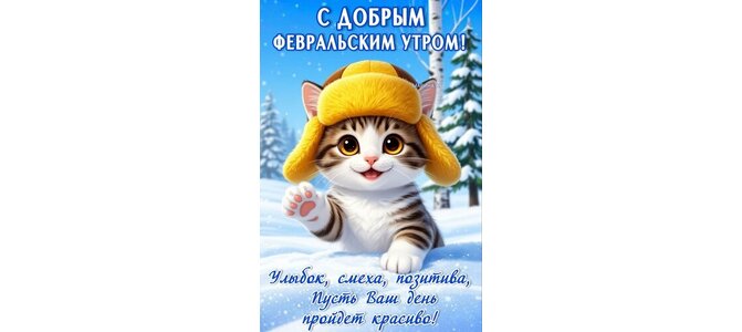 Открытка "С ДОБРЫМ ФЕВРАЛЬСКИМ УТРОМ! УЛЫБОК, СМЕХА, ПОЗИТИВА, ПУСТЬ ВАШ ДЕНЬ ПРОЙДЕТ КРАСИВО!"