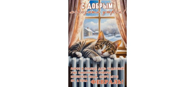 Открытка "С ДОБРЫМ МОРОЗНЫМ УТРОМ! МОРОЗ И СОЛНЦЕ! ДЕНЬ ЧУДЕСНЫЙ! УЖЕ ЗАКОНЧИЛСЯ ЯНВАРЬ! КРЕПИТЕСЬ ЛЮДИ, СКОРО"