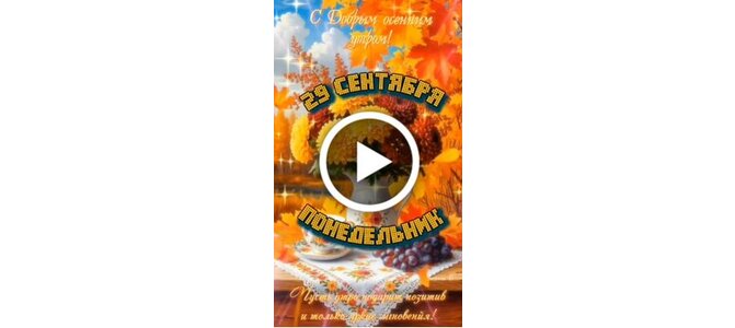 Видеооткрытка "С добрым осенним утром! 29 сентября понедельник."