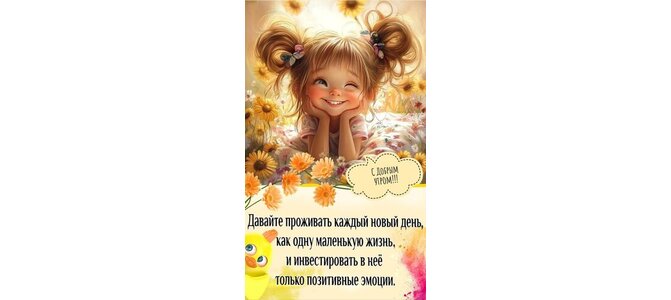 С добрым утром! Давайте проживать каждый новый день, как одну маленькую жизнь, и инвестировать в неё только позитивные эмоции.