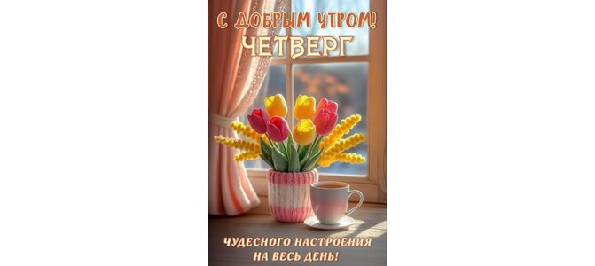 Открытка "С ДОБРЫМ УТРОМ! ЧЕТВЕРГ. ЧУДЕСНОГО НАСТРОЕНИЯ НА ВЕСЬ ДЕНЬ!"