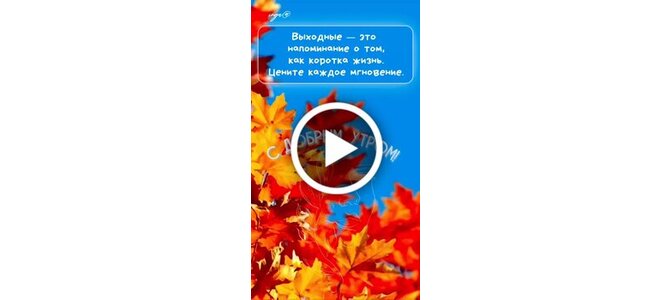 Видеооткрытка "С добрым утром! Выходные - это напоминание о том, как коротка жизнь. Цените каждое мгновение."