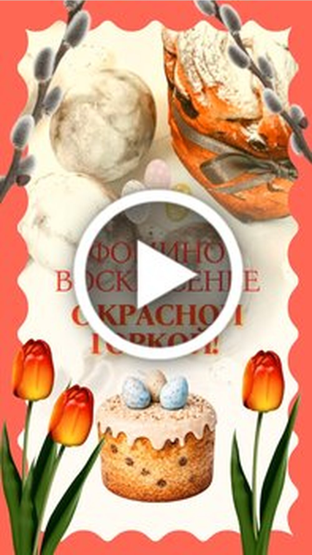 Красивая праздничная открытка поздравления с Фоминым воскресеньем и Красной горкой. Видео представляет собой нежную композицию из весенних цветов тюльпанов, пасхальной выпечки куличей и крашеных яиц. На фоне нежных лепестков и веток вербы размещен трогательный текст поздравления, желающий всем мира, добра, милосердия и прекрасного лета. Это идеальное видео для того чтобы отправить теплые пожелания близким и друзьям в этот светлый весенний праздник.