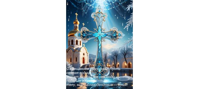 Теги:с крещением господним пусть святая водица унесет с собой все невзгоды и подарит здоровье телу, мир и благоденствие душе