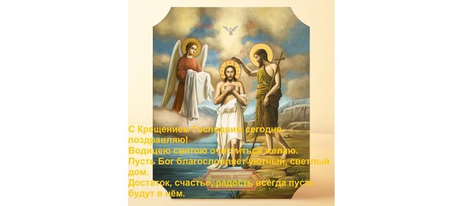 Теги:с крещением господним сегодня поздравляю водицею святою очиститься желаю пусть бог благословляет уютный, светлый дом достаток, счастье, радость всегда пусть будут в нём