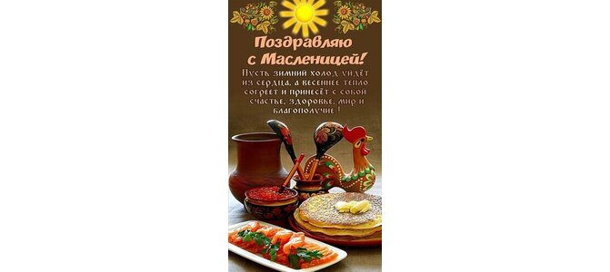 Поздравляю с Масленицей! Пусть зимний холод уйдёт из сердца, а весеннее тепло согреет и принесёт с собой счастье, здоровье, мир и благополучие!