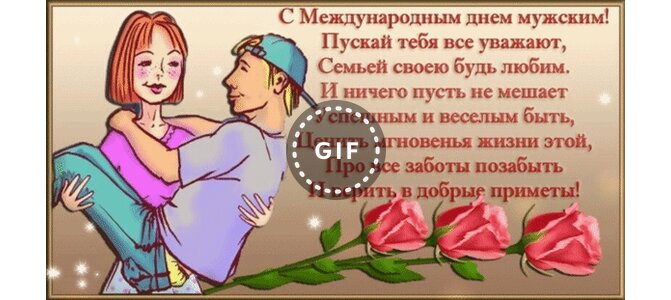 Анимированная открытка "С Международным днем мужским! Пускай тебя все уважают, семьей своею будь любим. И ничего пусть не ме"