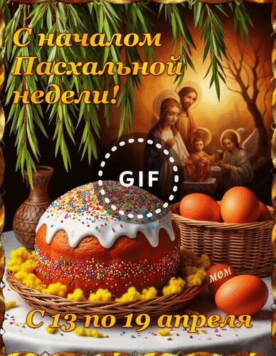 Анимированная открытка "С началом Пасхальной недели! С 13 по 19 апреля"
