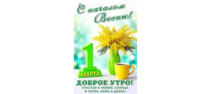 Открытка "С НАЧАЛОМ ВЕСНЫ! 1 МАРТА. ДОБРОЕ УТРО! СЧАСТЬЯ И ЛЮБВИ, СОЛНЦА И ТЕПЛА, МИРА И ДОБРА!"