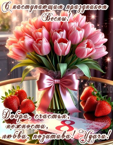Теги:с наступающим 8 марта, цветы, букет цветов, тюльпаны, весна, красивая картинка, счастья, любви, нежности, добра, удачи, клубника