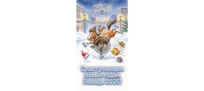 Анимированная открытка "С наступающим Новым годом Лошади 2026!"